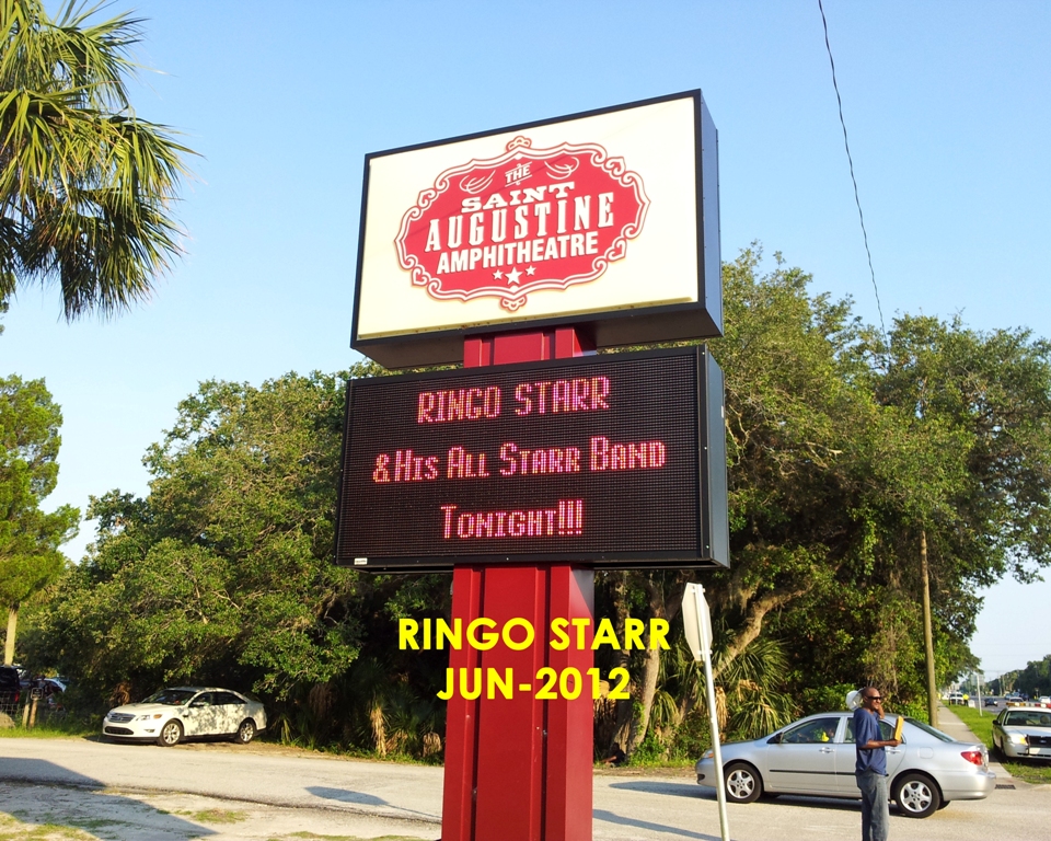 201206 - (#14) My first concert after moving to Florida. Finally got to see Ringo. That makes it that Ive seen all the Beatles in concert except John. This facility in St Augustine is really nice, very much like Michigans Pine Knob or Georgias Chastain Park. Great concert! | ||